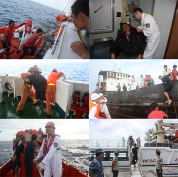 西沙鸭公岛附近渔船失火“南海救115”轮救助