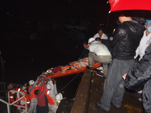 2050时“华英392”艇抵靠汕头救助码头,胃出血渔民交汕头120救护车送院治疗。