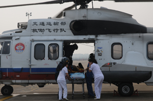 救助直升机“B-7137”海南抱虎角以东海域救受伤渔民