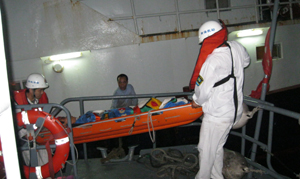 2013年10月10日1400时,往湛江方向行驶的渔船“粤阳江80108”在湛江硇洲岛东南40海里处,船上1名渔民头部受伤,大量出血,曾昏迷几次,请求救助。