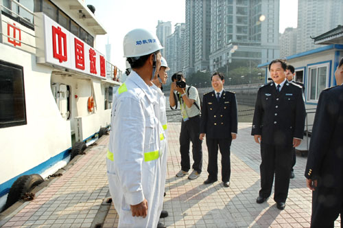 “他们就是把‘生的希望送给别人、把死的危险留给自己’的救助队伍”。随着陪同人员的介绍,11月25日上午9时40分,国家亚运安保协调小组组长、公安部党委成员、副部长李东生在百忙中来到中大码头,亲切看望了正在执行亚运水上安保任务的南海救助局“南海救609”轮全体船员,并与船员握手问候。“南海救609”轮全体船员激动地表示,一定坚决完成上级交给的亚运水上安保任务,为祖国争光,为救助队伍争光。(潘永德摄影报道)