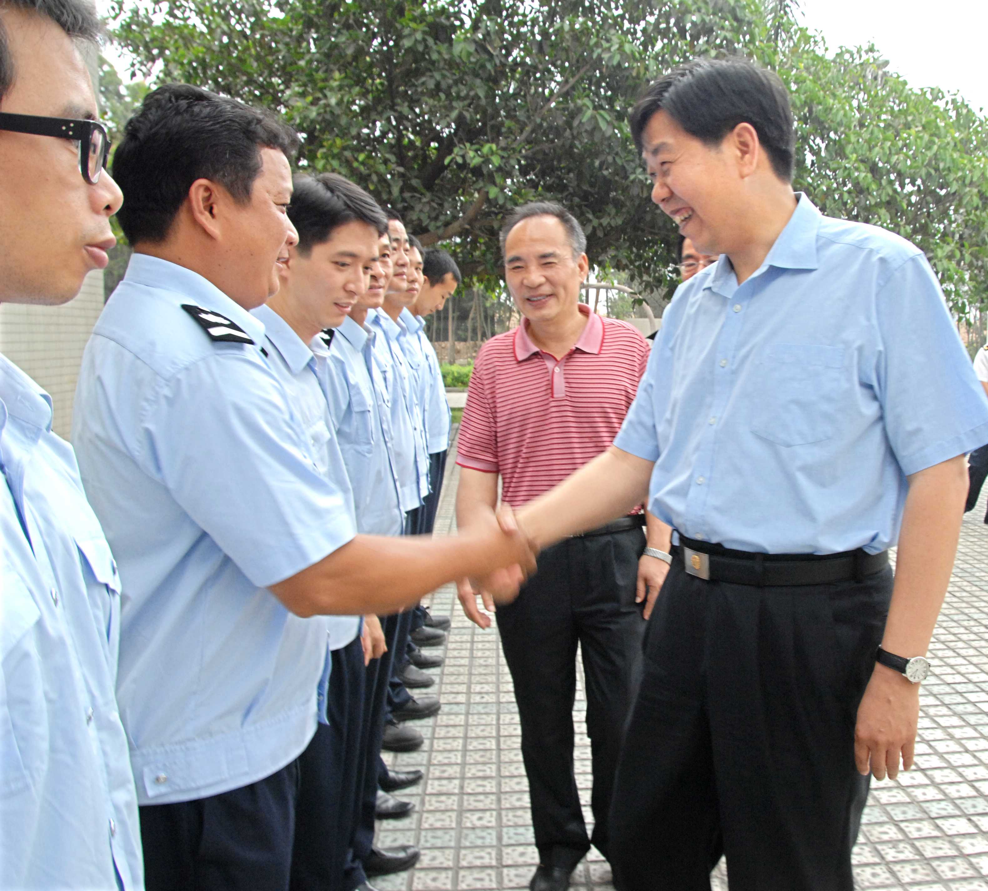 莅临基地后,李组长与精神饱满、列队整齐的基地职工一一握手。他饱含深情地表示:“我第一天到部里上任,就看到你们救助人的先进代表——潘伟的事迹,很感人,是我们大家学习的榜样。你们救助人不怕难,不畏险,在大风大浪中拯救生命,‘把生的希望送给别人,把死的危险留给自己’,你们是国家德政工程的重要体现。我代表李盛霖部长感谢你们,同志们辛苦了!”